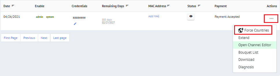2. Manage/Extend Lines => Actions => Force Countries (Firewall). You can find it at http://mr.iptv.uno/dashboard/manage-lines.