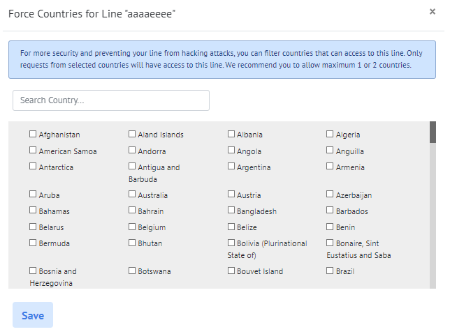 4. Save it so your credentials can be accessed only from those countries. Access from all other countries will be denied.